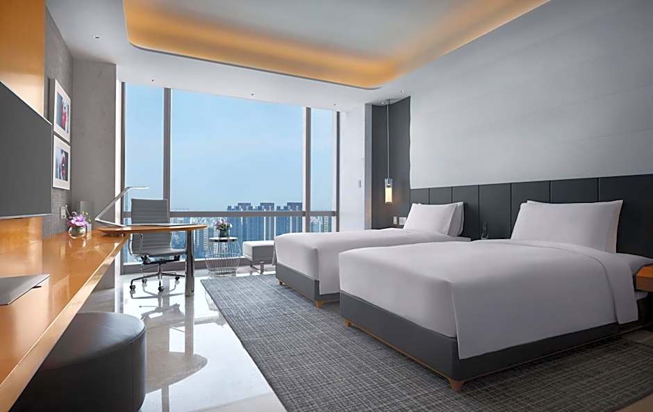 Guests will have a special experience as this double room features a infinity pool and a hot tub. Offering free toiletries and bathrobes, this double room includes a private bathroom with a bath, a shower and a hairdryer. The spacious air-conditioned double room offers a TV with cable channels, soundproof walls, a mini-bar, a tea and coffee maker as well as city views. The unit offers 1 bed.